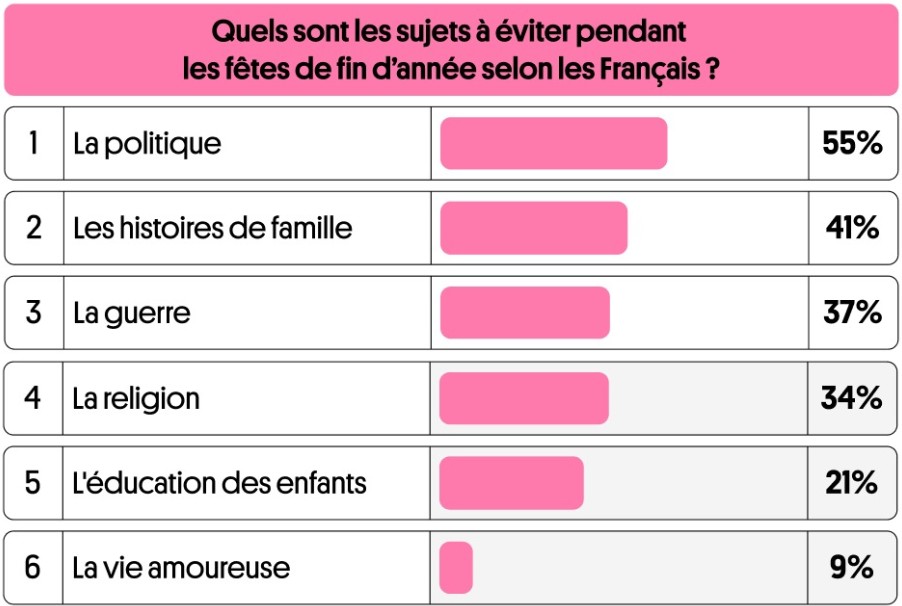 An article in La Dépêche gave some advice on how to have a successful celebration on Christmas Eve. The headline included, “subjects to avoid” according to the language learning website Preply, who had asked 1500 of their readers what they don’t talk about in order to preserve the harmony during the feast on December 24. At the top of the list was “politics” and considering that last year the makeup of the government changed at least 4 times that would be a challenge in France.