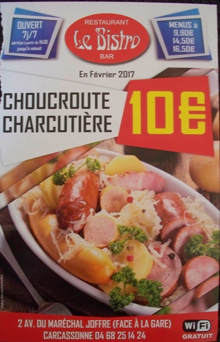 - Choucroute: also from Alsace with sauerkraut, smoked pork, sausages, and potatoes
