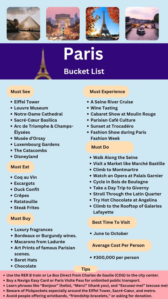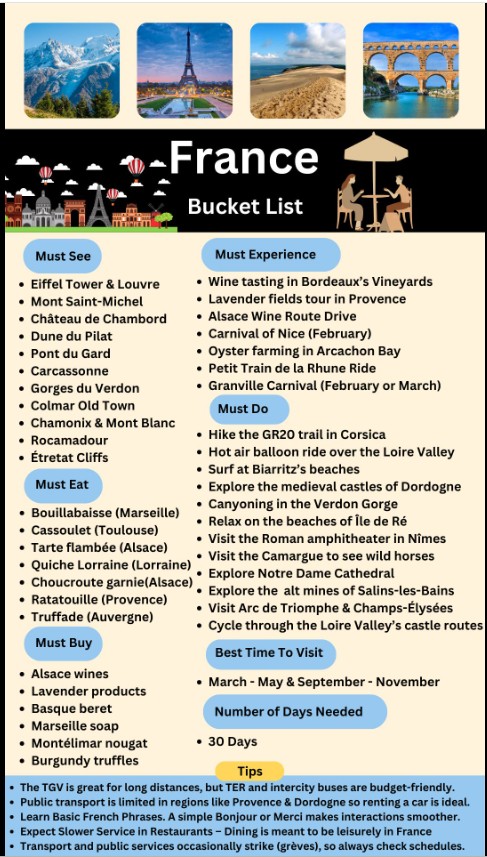 There’s an online travel information source called “Global Wanderlist” who describe themselves as, “We’re here to fuel your wanderlust with detailed destination guides, must-see attractions, hidden local gems, and travel tips that help you explore more and stress less.” As the company name suggests, they publish lists covering worldwide vacation spots to help you narrow down the choice of where to visit, when to go, plus some tips to make the journey even more enjoyable. They are headquartered in India so their Bucket Lists favor itineraries for that country with intriguing names like Mysore, Spiti, Sikkim, and Lucknow. As exotic as those sound, my attention was drawn to their recommendations for France.