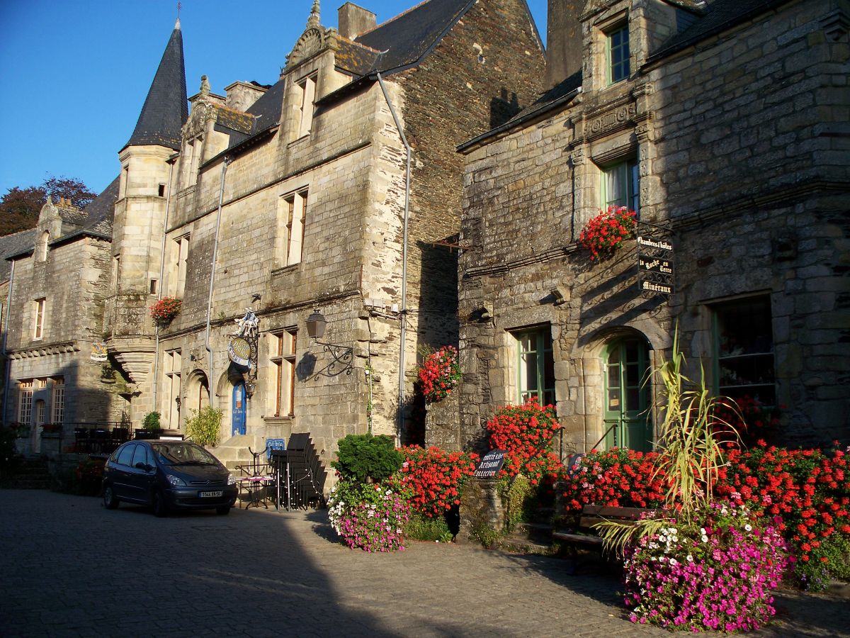 Rochefort-en-Terre in Brittany is wonderfully preserved with a rich history including a witch who could apparently be in two places at once. A flower-filled village when we were there.