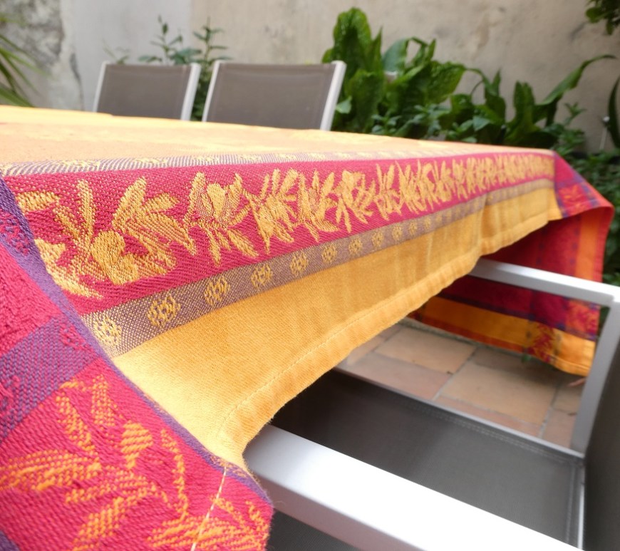If you want to become a French citizen, one of the requirements is to successfully complete an interview with an immigration officer who will ensure that you are fully integrated into the society here. You can be asked questions about history, geography, culture, values, government, current news and politics, and your daily life. A task that I see often mentioned is to name the symbols of France. According to the Livret du Citoyen (Citizen’s Booklet) that we are given to study, those should include the national anthem, the flag, and Marianne the statue of whom appears in every town hall. Additional responses could be the 14th of July, the official seal, the faisceau de licteur design that appears on the cover of passports, and even the rooster. While those seem to be official and easily recognized by anyone living here, you might get a different response if you asked a visitor to this country. Based on movies and personal experiences I bet that you would hear, “the Eiffel Tower, baguettes and croissants, wine and cheese, blue-and-white striped shirts and berets.” Let’s add one more to the list: the tablecloths of Provence.
